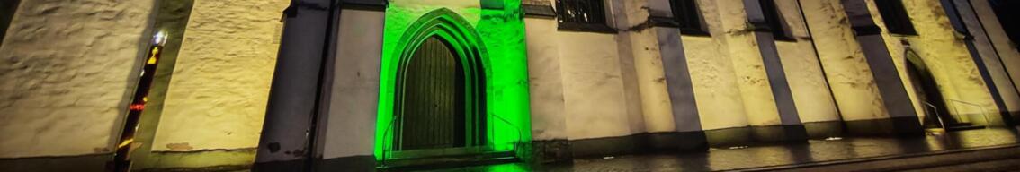 Auch in diesem Jahr steht jede Woche wieder im Zeichen einer Farbe, die sich auch in der Beleuchtung der Pfarrkirche St. Johannes Baptist widerspiegelt.